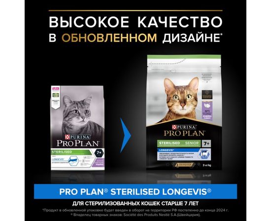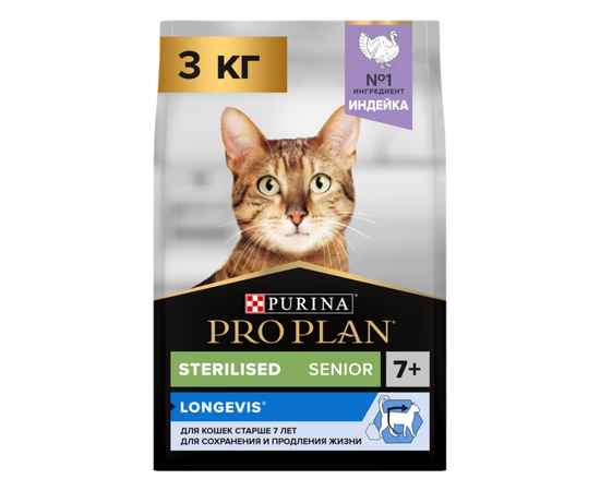 Сухой корм Pro Plan Sterelised для стерилизованных кошек старше 7 лет, с индейкой, 3 кг