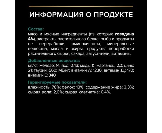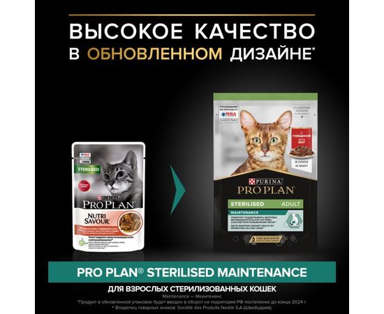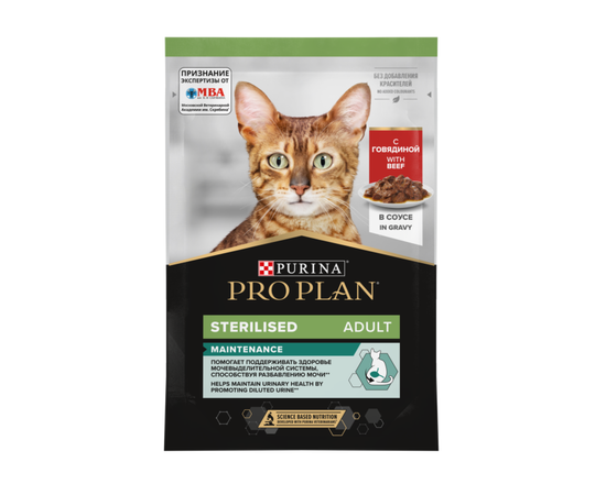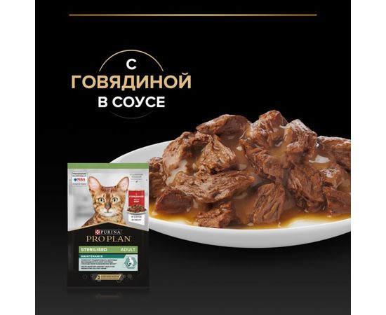 Влажный корм Pro Plan Sterilised для стерилизованных кошек, с говядиной в соусе, 85 г