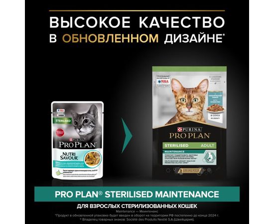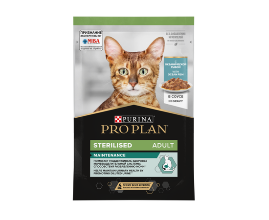 Влажный корм Pro Plan Sterilised для стерилизованных кошек, с океанической рыбой в соусе, 85 г