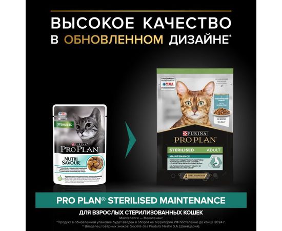 Влажный корм Pro Plan Sterilised для стерилизованных кошек, с океанической рыбой в желе, 85 г