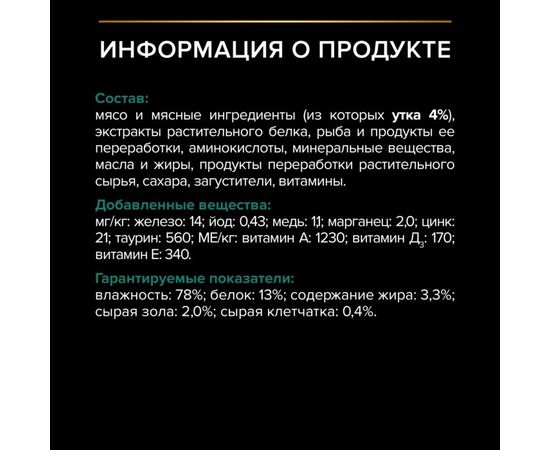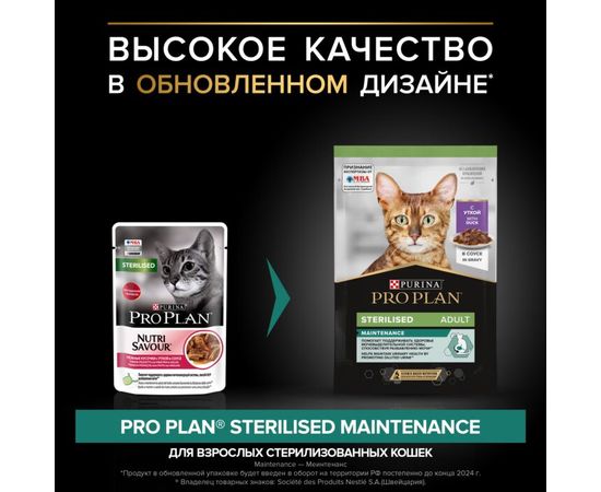 Влажный корм Pro Plan Sterilised для стерилизованных кошек, с уткой в соусе, 85 г