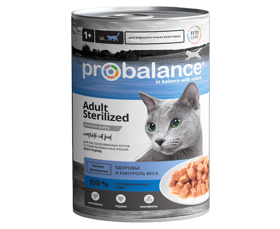 ProBalance® Sterilized для кастрированных и стерилизованных котов и кошек предназначен для ежедневного кормления взрослых кошек всех пород. Широкий ингредиентный состав высокого качества обеспечивает кошку всеми необходимыми питательными веществами. Корм обогащен витаминами, минералами и аминокислотами.