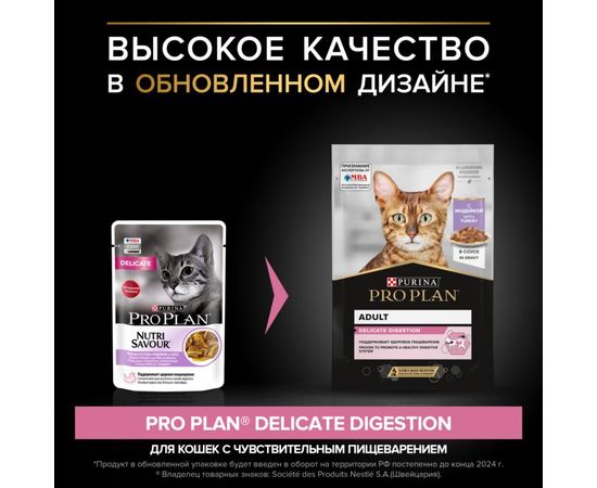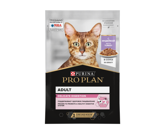 Влажный корм Pro Plan Delicate для кошек с чувствительным пищеварением, с индейкой в соусе, 85 г