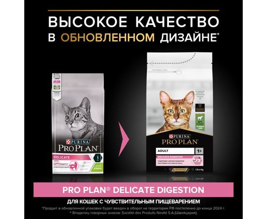 Сухой корм Pro Plan Delicate для кошек с чувствительным пищеварением, с ягненком, 1,5 кг