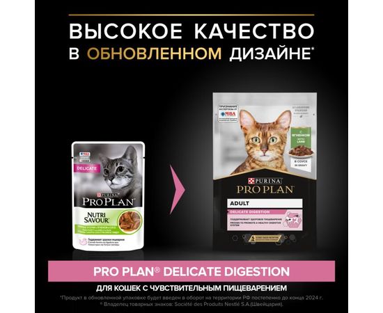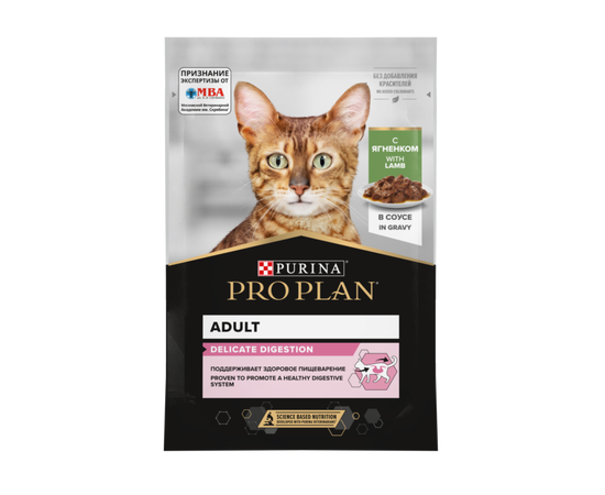 Влажный корм Pro Plan Delicate для кошек с чувствительным пищеварением, с ягненком в соусе, 85 г