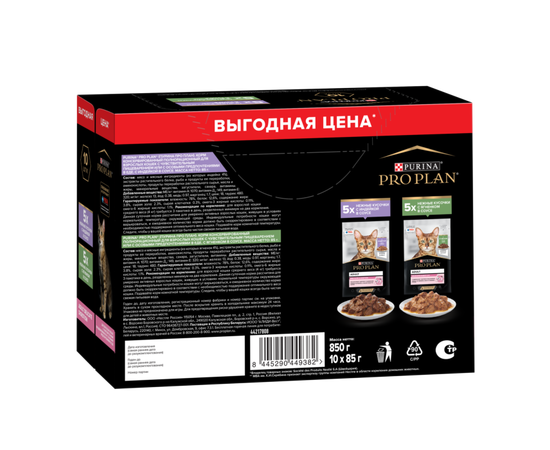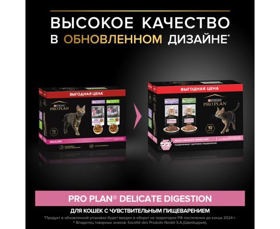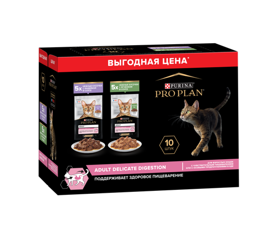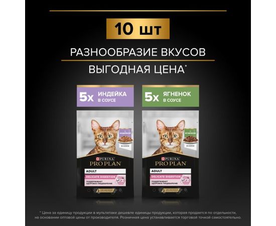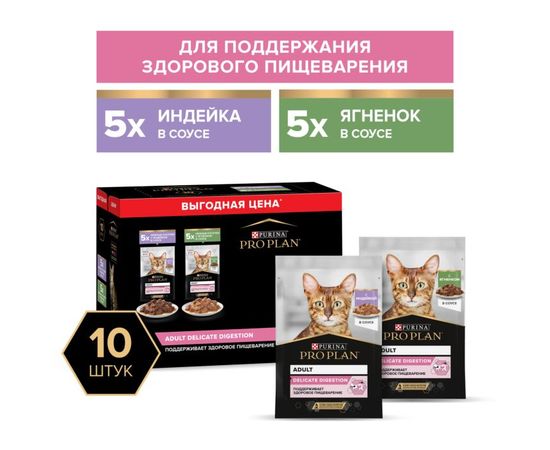 Влажный корм Pro Plan Delicate для кошек с чувствительным пищеварением, с индейкой и ягненком, 10*85 г