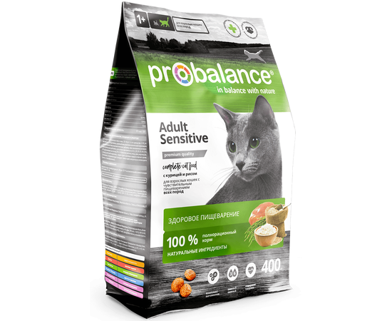 Сухой корм Probalance Sensitive Корм для кошек с чувствительным пищеварением, курица-рис, 400 гр