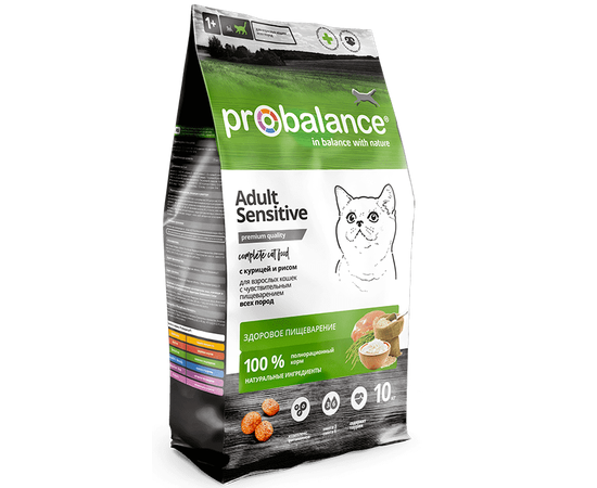 Сухой корм ProBalance Sensitive для кошек с чувствительным пищеварением, курица-рис, 10 кг