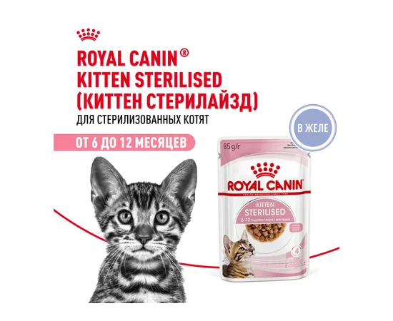 Влажный корм Роял Канин Kitten Sterilised для стерилизованных котят в желе 85гр