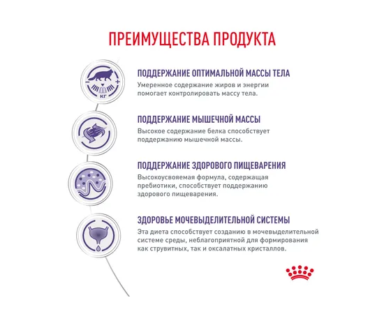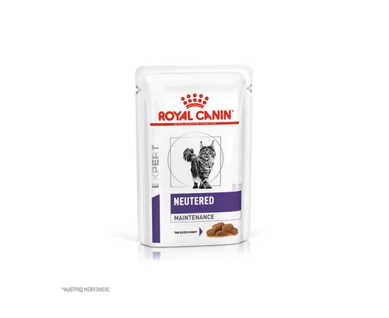 Корм консервированный полнорационный для взрослых кошек - С момента стерилизации и кастрации до 7 лет NEUTERED MAINTENANCE (НЬЮТРИД МЕЙНТАНЕНС), мелкие кусочки в соусе ROYAL CANIN®. Помогает поддерживать оптимальный вес у кастрированных/стерилизованных кошек за счет умеренного содержания жиров и энергии, а также поддерживает мышечную массу за счет высокого содержания белка.