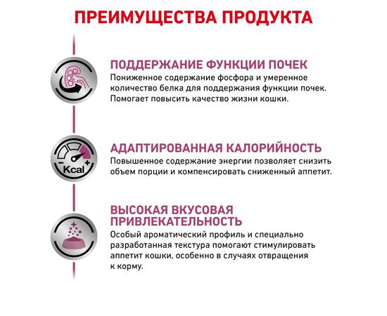 Специально разработанный ароматический профиль помогает удовлетворить особые вкусовые предпочтения кошки. У животных с ХПН довольно часто наблюдается потеря аппетита, непереносимость корма, анорексия.