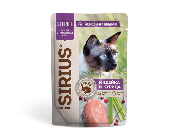 Влажный корм Sirius для стерилизованных кошек, индейка и курица, 85 г