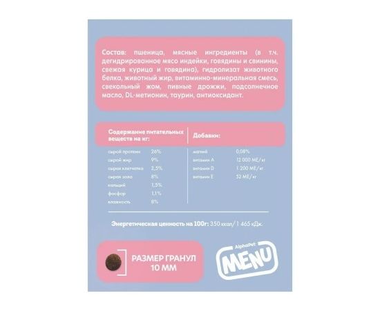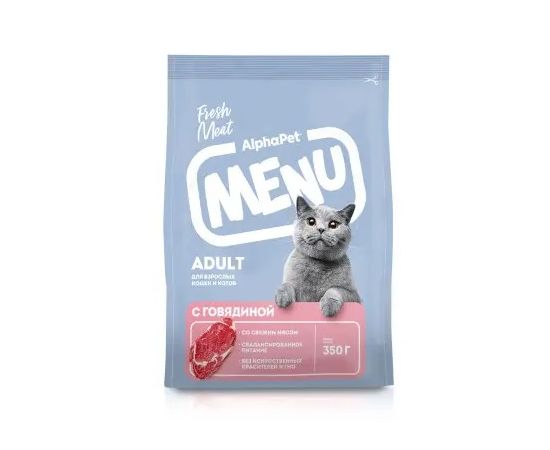 Сухой корм AlphaPet Menu для кошек, говядина, 0,35кг