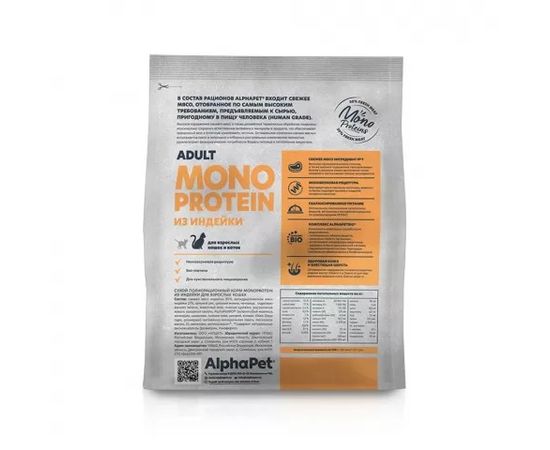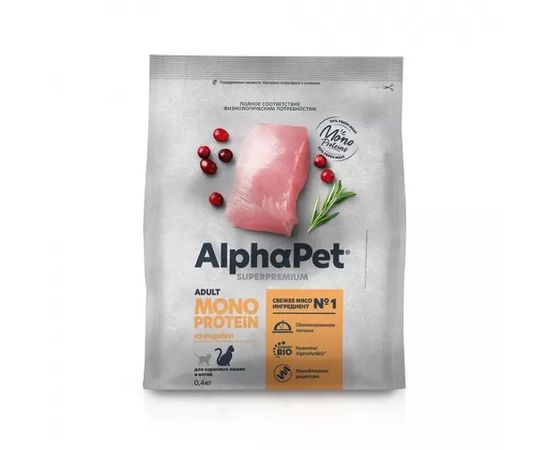 Сухой корм AlphaPet Superpremium Monoprotein для кошек, с индейкой, 400г