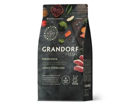 Сухой корм Grandorf Fresh для стерилизованных кошек, утка с бататом, 2кг