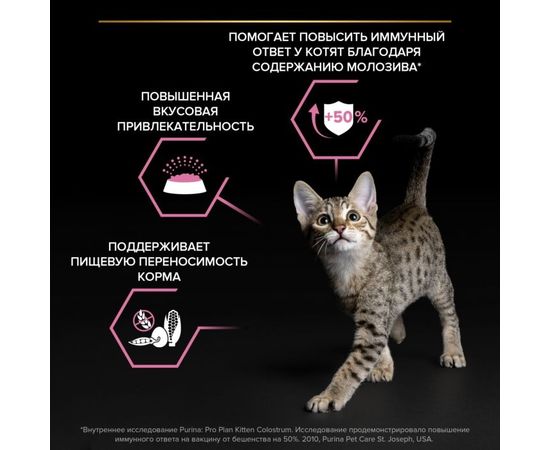 PRO PLAN® для котят – корм с высоким содержанием белка, сочетающий все необходимые питательные вещества, включая витамины С и D3, а также Омега-3 жирную кислоту. Легко усвояемый корм для котят с чувствительным пищеварением.