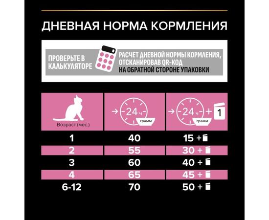 Переводите котенка на корм PRO PLAN® Junior Delicate в возрасте 3‐4 недели. Для более легкого поедания корм следует смешивать с водой.