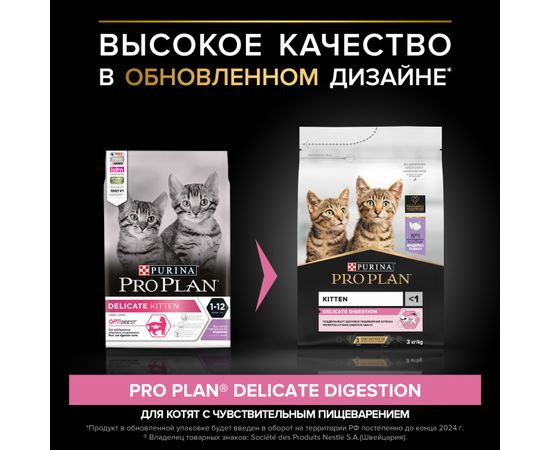 Сухой корм Pro Plan Delicate Kitten для котят с чувствительным пищеварением, с индейкой, 200 кг