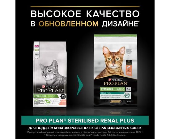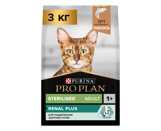 Сухой корм Pro Plan Sterilised Optirenal для стерилизованных кошек, с лососем, 3 кг