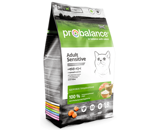 Сухой корм ProBalance Sensitive для кошек с чувствительным пищеварением, курица-рис, 1,8 кг