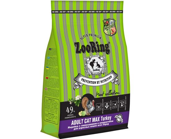 Сухой корм ZooRing Adult Cat MAX для кошек, индейка с глюкозмином и хондроитином, 1,5 кг
