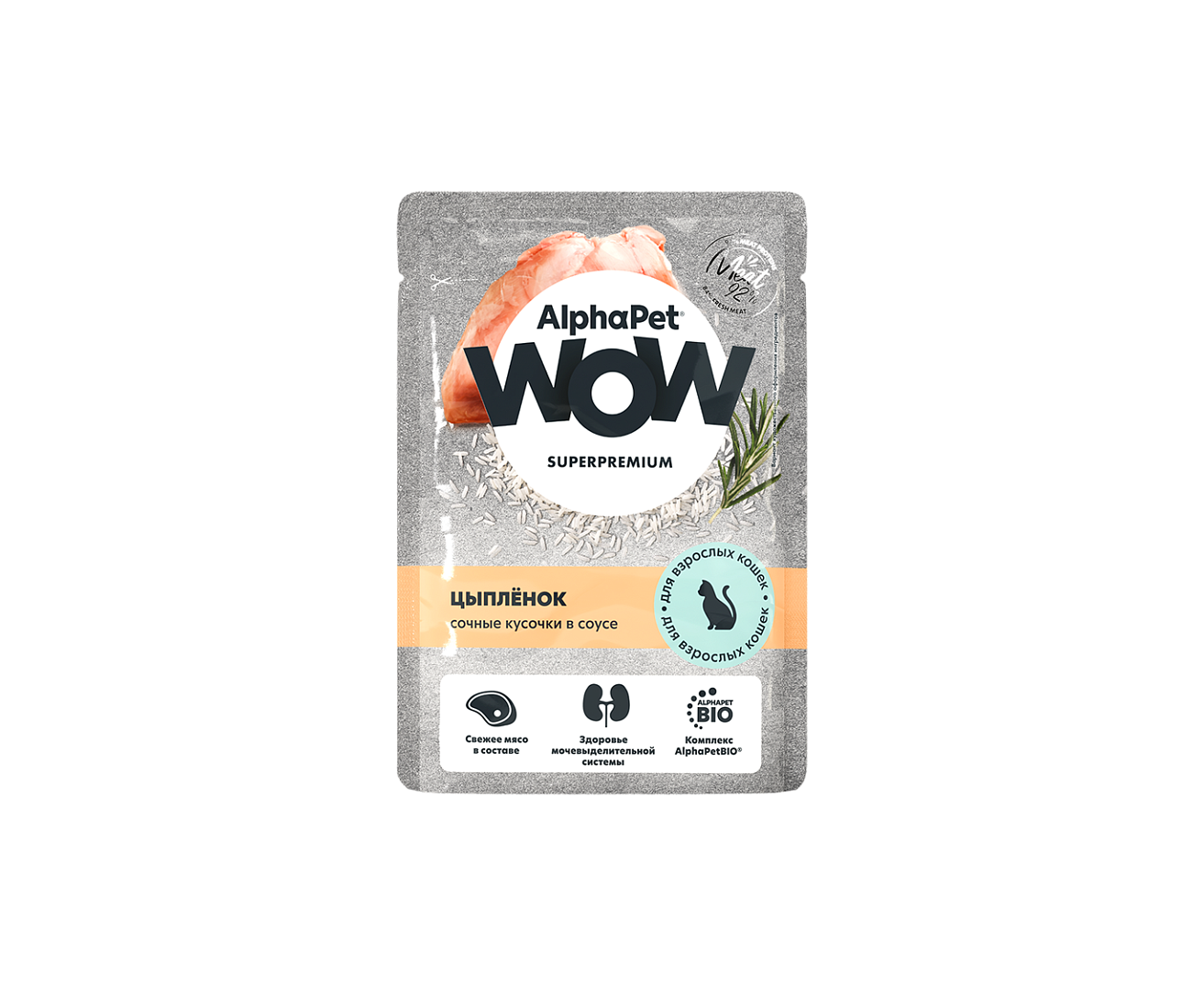 AlphaPet WOW цыпленок кусочки в соусе д/кошек 85г, 655247