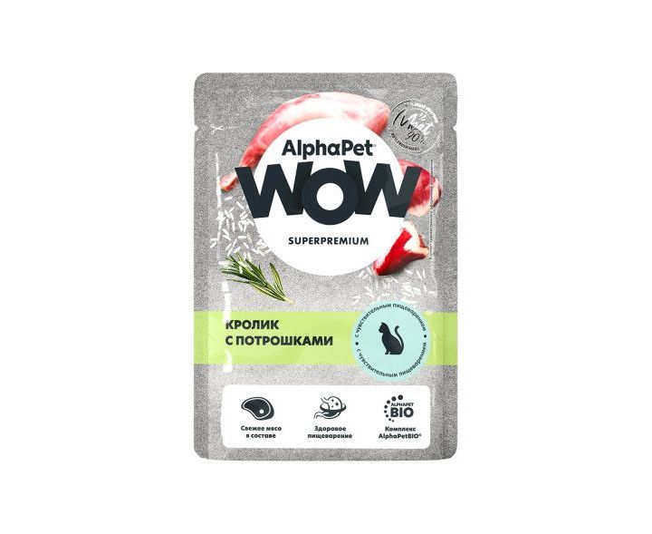 AlphaPet WOW кролик с потрошками ломтики в соусе д/кошек 85г, 655193