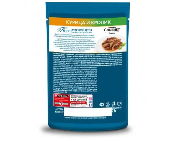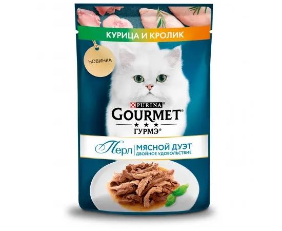 Гурмет PERLE для кошек Кролик Курица в соусе пауч 75 г., 12461404