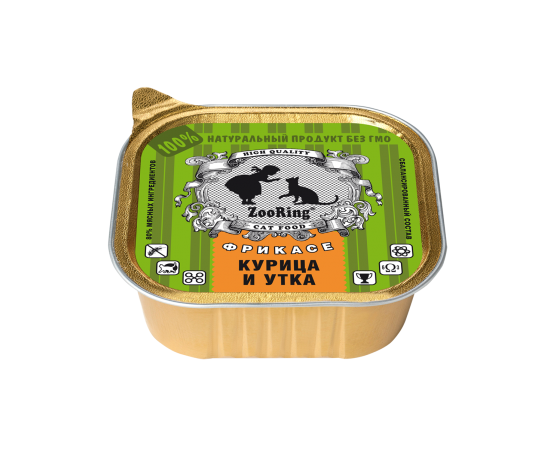 Влажный корм ZooRing для кошек, курица и утка, 100 гр