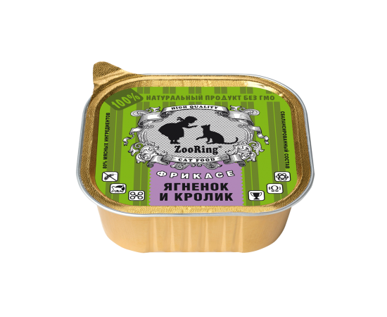Влажный корм ZooRing для кошек, ягненок и кролик, 100 гр