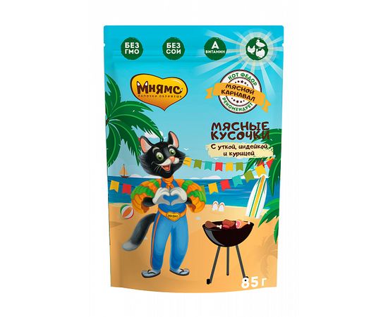 Мнямс Мясные кусочки Мясной карнавал для кошек утка, индейка, курица 85г.,706059