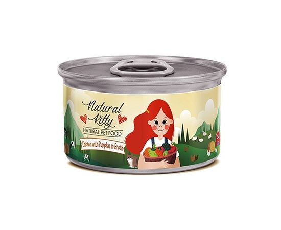 Консервы Pettric Natural Kitty для кошек, из курицы с тыквой в бульоне, 80 г