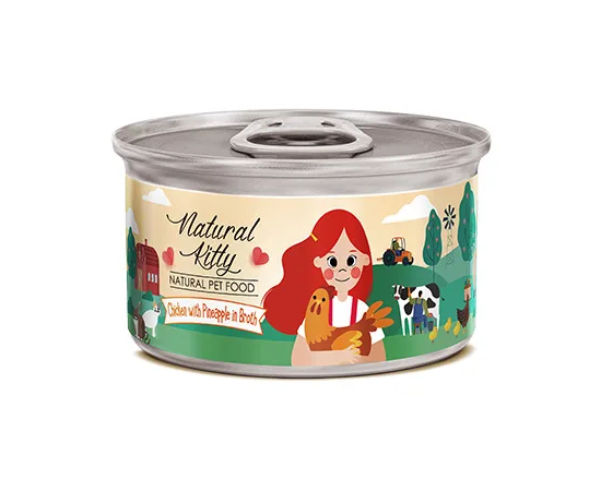 Консервы Pettric Natural Kitty для кошек, из курицы с ананасом в бульоне, 80 г
