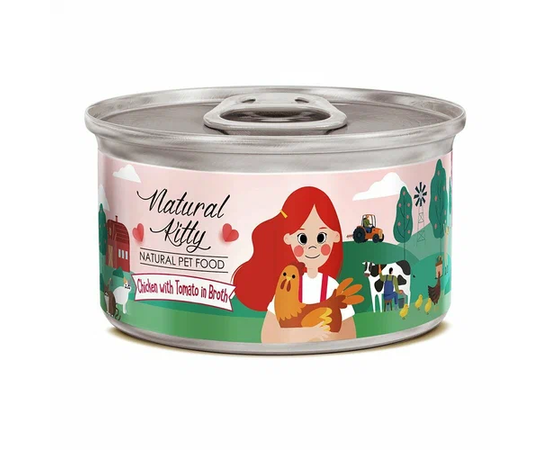 Консервы Pettric Natural Kitty для кошек, из курицы с томатом в бульоне, 80 г