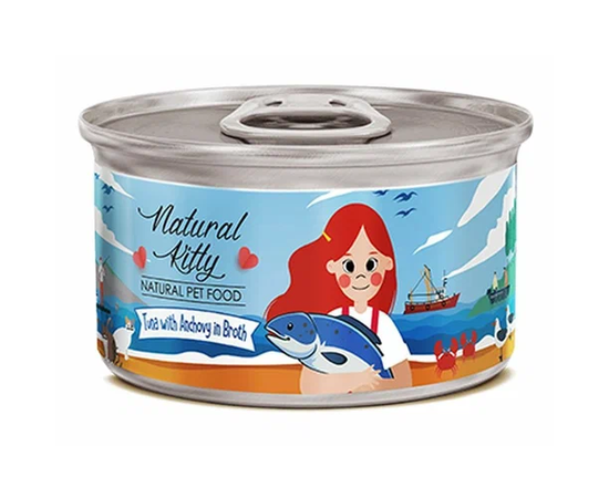Консервы Pettric Natural Kitty для кошек, из тунца с анчоусами в бульоне, 80 г