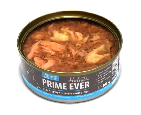 Консервы Prime Ever для кошек, из тунца с белой рыбой в желе, 80 г