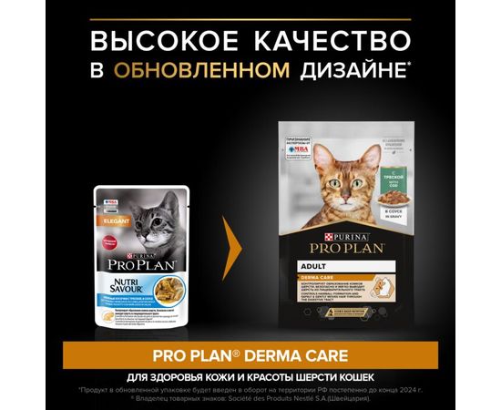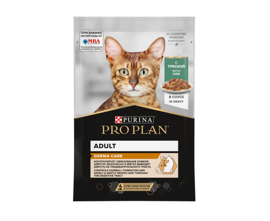 Влажный корм Pro Plan Derma Plus для кошек, с треской в соусе, 85 г