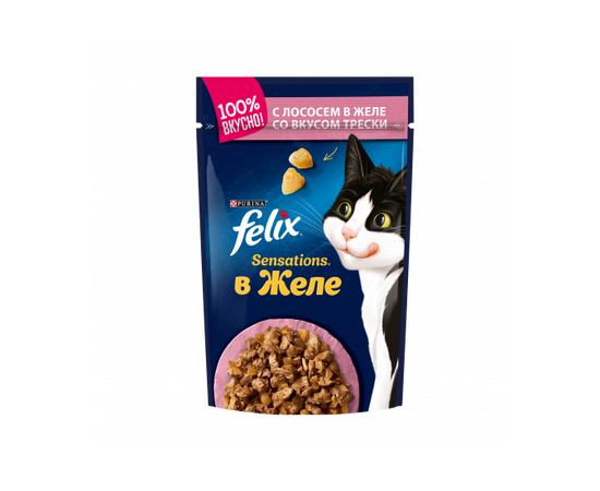 Влажный корм FELIX Sensations для кошек, с лососем и треской в желе, 75 г