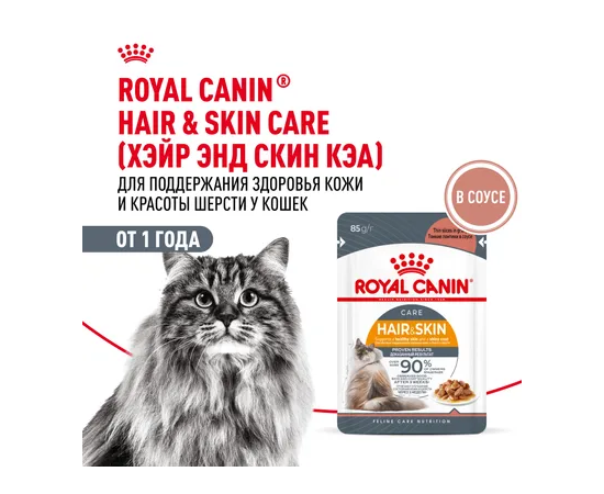 Влажный корм Роял Канин Hair & Skin care (Хэйр Энд Скин Кэа) для кошек для поддержания красоты шерсти в соусе 85гр