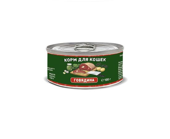 Сырой протеин не менее 12,0 г, сырой жир не более 8,0 г, сырая зола не более 2,0 г, таурин 0,3 г, массовая доля поваренной соли 0,4-0,6 г, влага не более 82%, общий фосфор не более 0,4 г, кальций не более 0,3 г.