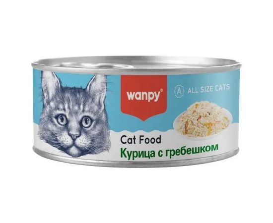 Влажный корм Wanpy Cat для кошек, курица с гребешком, 95 г