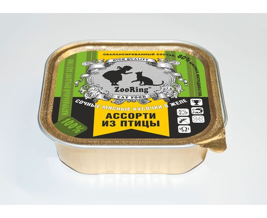 Влажный корм ZooRing для кошек, ассорти из птицы, 100 г