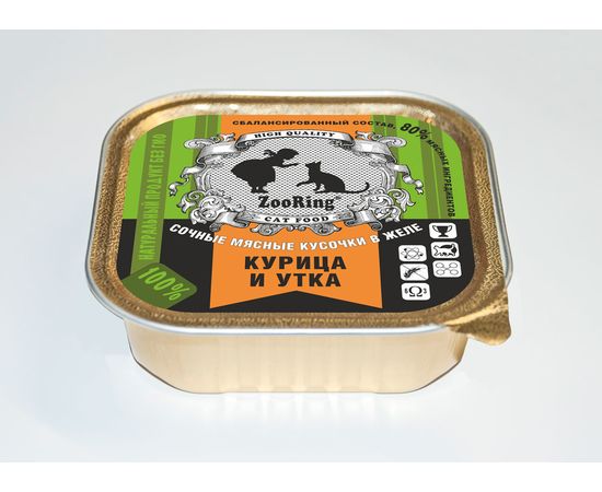 Влажный корм ZooRing для кошек, курица и утка, 100 г