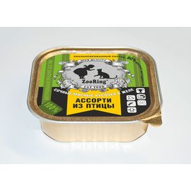 Корм в виде гранул содержит все необходимые витамины, минералы и микроэлементы для насыщения и поддержки состояния питомца. Такой корм имеет низкое содержание влажности, поэтому он предназначен для долгого хранения. Также сухой корм ZooRing содержит специальные элементы, которые удаляют налет с зубов питомцев. - Влажный корм