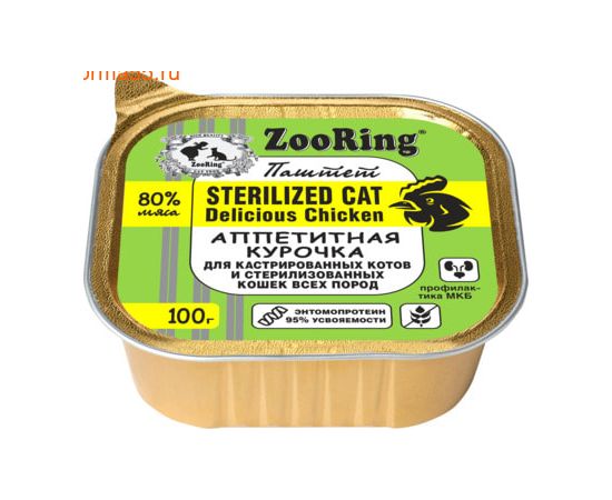 Влажный корм ZooRing для стерилизованных и кастрированных котов, аппетитная курочка, 100 г