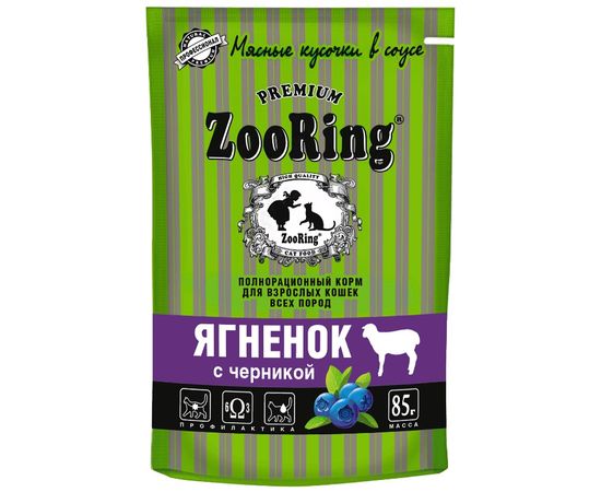 Влажный корм ZooRing для кошек, ягненок с черникой, 85гр