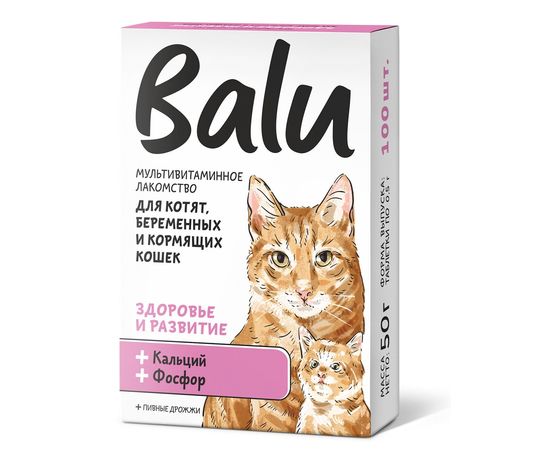 Balu Лакомство мультивитаминное для Котят, беременных и кормящих кошек "Здоровье и развитие кальций и фосфор" 100 таб