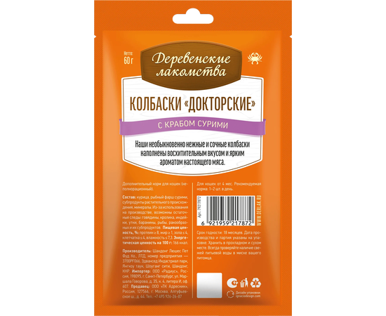 Необыкновенно нежные и сочные колбаски для кошек наполнены восхитительным вкусом и ярким ароматом краба. Это не просто лакомство, а настоящий деликатес, созданный для самых взыскательных кошачьих гурманов. Колбаски «Докторские» с крабом сурими идеально подходят для поощрения, дрессировки или просто как вкусное дополнение к основному рациону. Удобная упаковка позволяет сохранить свежесть и аромат продукта на долгое время.
