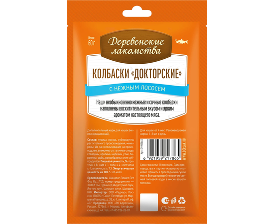 Необыкновенно нежные и сочные колбаски для кошек наполнены восхитительным вкусом и ярким ароматом настоящего лосося. Мы тщательно отбираем только лучшие сорта лосося. Колбаски «Докторские» с нежным лососем идеально подходят для поощрения, дрессировки или просто как вкусное дополнение к основному рациону. Удобная упаковка позволяет сохранить свежесть и аромат продукта на долгое время.