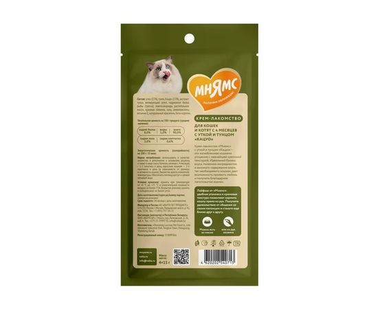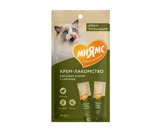 Крем-лакомство Мнямс для кошек с уткой и тунцом Кацуо 15 г х 4 шт